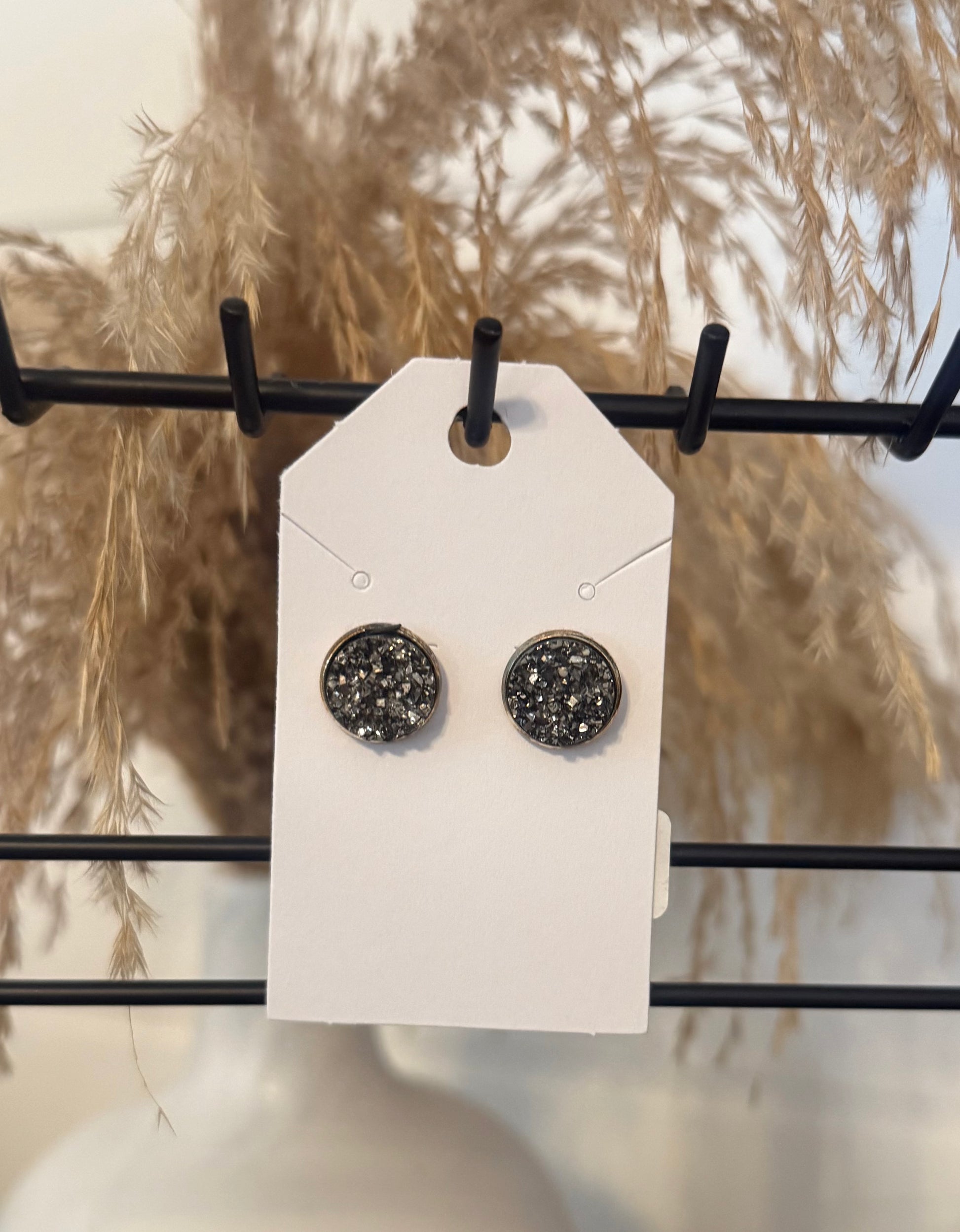 Showcase your love for unique accessories with our Rocky Road Studs. These elegant studs feature a stunning black druzy stone, adding a touch of glamour to any outfit. Crafted with high-quality materials, these studs are the perfect choice for any fashion-forward individual looking to make a statement.